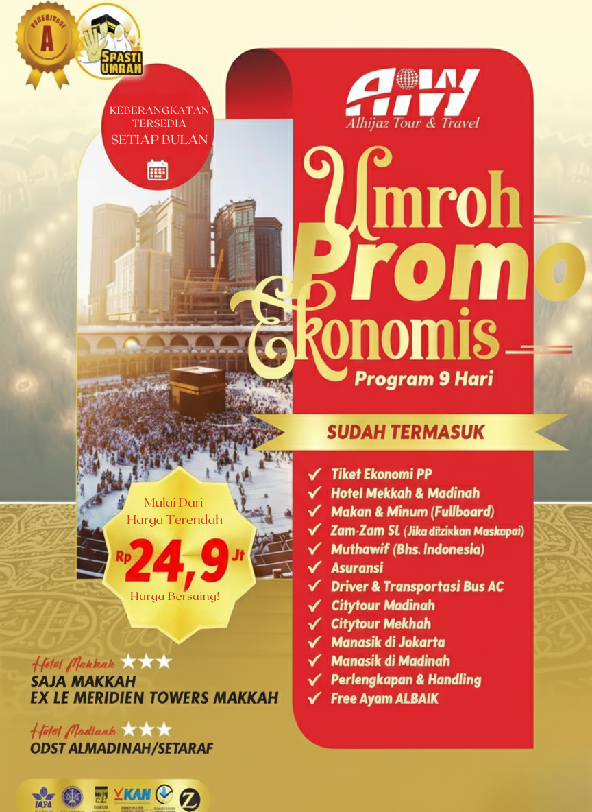 Bersama Alhijaz Indowisata, Hadir Sejak Tahun 2000, Terpercaya Memberangkatkan Puluhan Ribu Jamaah Ke Tanah Suci. Kini Giliran Anda Merasakan Perjalanan Ibadah Yang Tenang, Nyaman, & Penuh Keberkahan